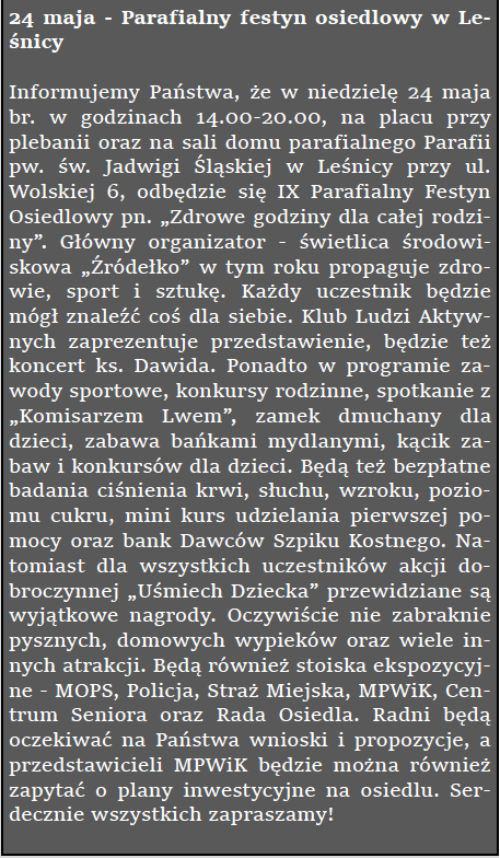 Informacja za Gazetą Leśnicką.