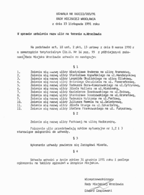 Brzmi dziwnie? Trochę. A jednak tak było, przynajmniej czytając uchwałę Rady Miasta z dnia 23.11.1991.