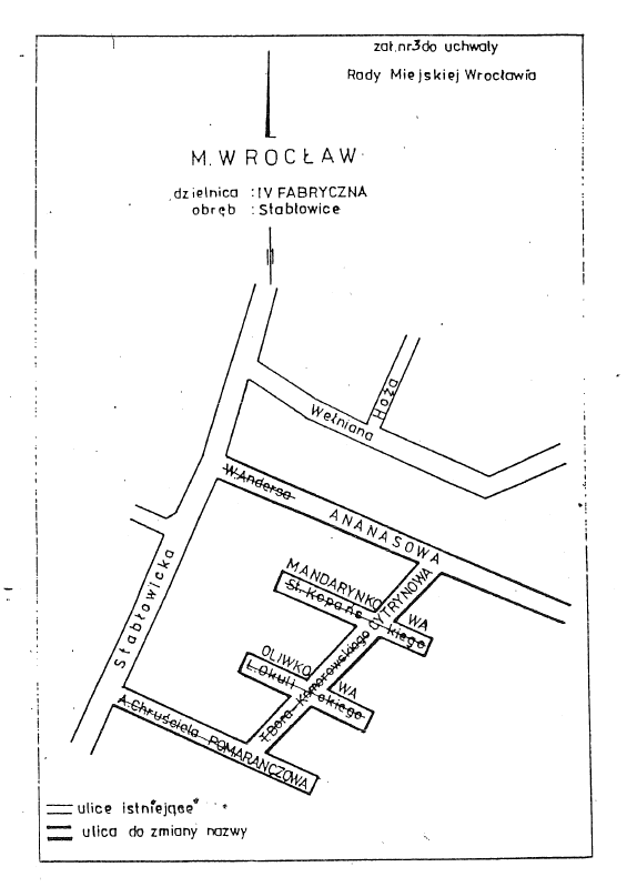 1. Zmienia się nazwę ulicy Władysława Andersa na ulicę Ananasową.